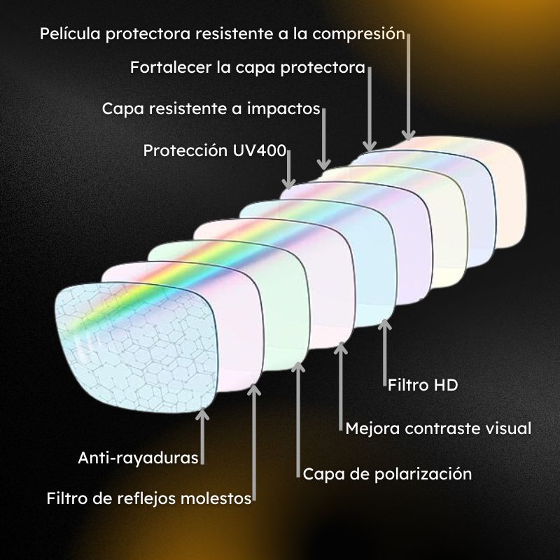 Nuestros lentes de sol polarizados son ideales para cualquier actividad al aire libre. Reducen los reflejos, mejoran la nitidez visual y bloquean al 100% los rayos UV. Además, realzan los colores naturales, permitiéndote disfrutar del entorno con total comodidad y estilo, ya sea que estés haciendo deporte, conduciendo o simplemente paseando bajo el sol.